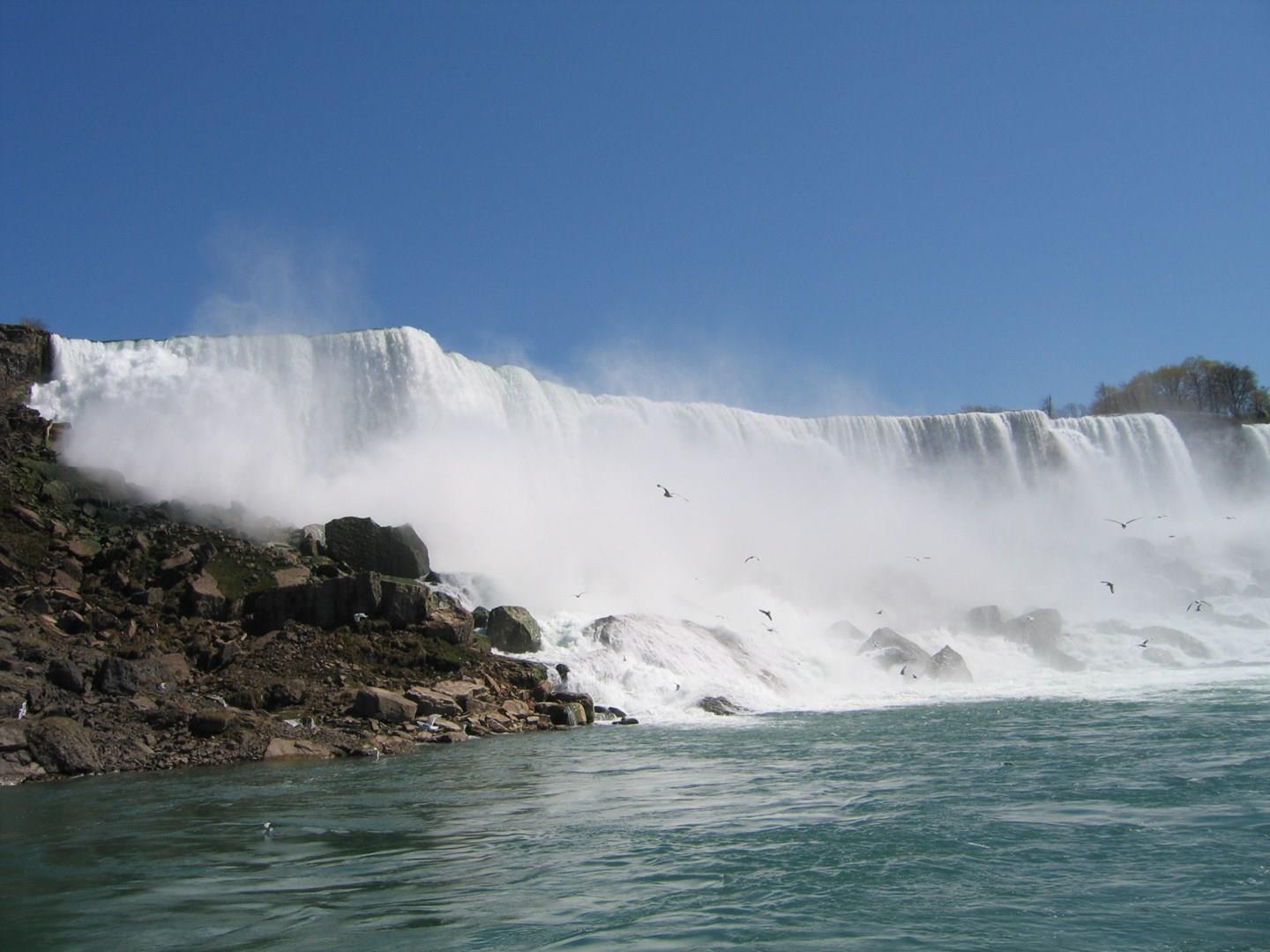 We drive south past Toronto and through the orchards and vineyards of the Niagara Peninsula with final destination: Niagara Falls. You will enjoy a boat ride on the Hornblower Cruise boat that brings us to the foot of the thundering waterfalls, an unforgetable experience. We also take a ride to the top of the Skylon Tower offering a spectacular view of the falls and the surrounding area. Afterwards you can enjoy and 'optional' helicopter Tour or visit the Niagara Skywheel. The evening is free for your own expoloration. Overnight.
