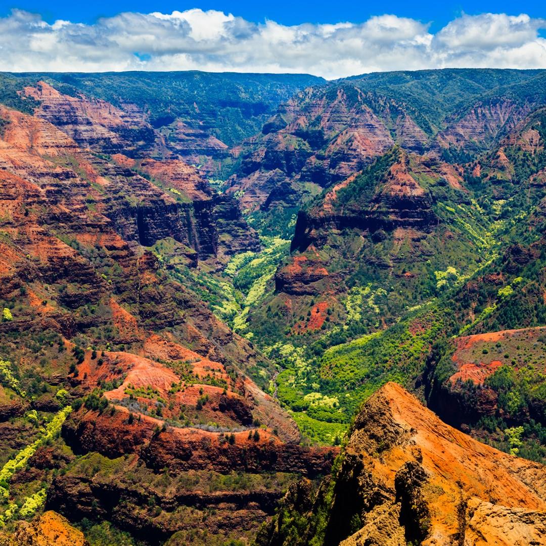 Many tourists consider Kauai to be the most beautiful of the Hawaiian Islands. It is much less touristy than Oahu, no skyscrapers, much more greenery and beautiful nature. These beautiful landscapes can also be seen in movies like Jurrasic Park, Indiana Jones and some scenes from King Kong. In the northwest you will find the rugged and almost inaccessible Na Pali Coast. Other not-to-be-missed attractions include: Waimea Canyon, a deep river gorge, the 'Kalalau Viewpoint' from where you get one of the most beautiful panoramas on the island and the Kilohana Plantation, one of the most important sugar cane plantations in Hawaii.